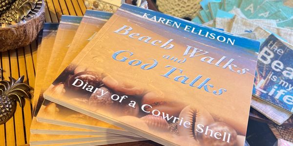 Truthfully, a more accurate description would be, "Diary of what I hear from God as I search for cowrie shells." But that's just not as poetic. I fell in love with cowrie (also spelled cowry) shells when I was just nine-years-old. I was digging in the soft Hawaiian sand and uncovered a shiny orange oval trimmed in tawny beige. It shone brightly in the sun as I held in my small palm.